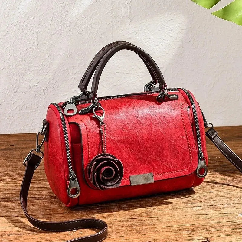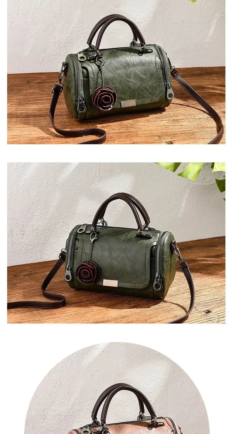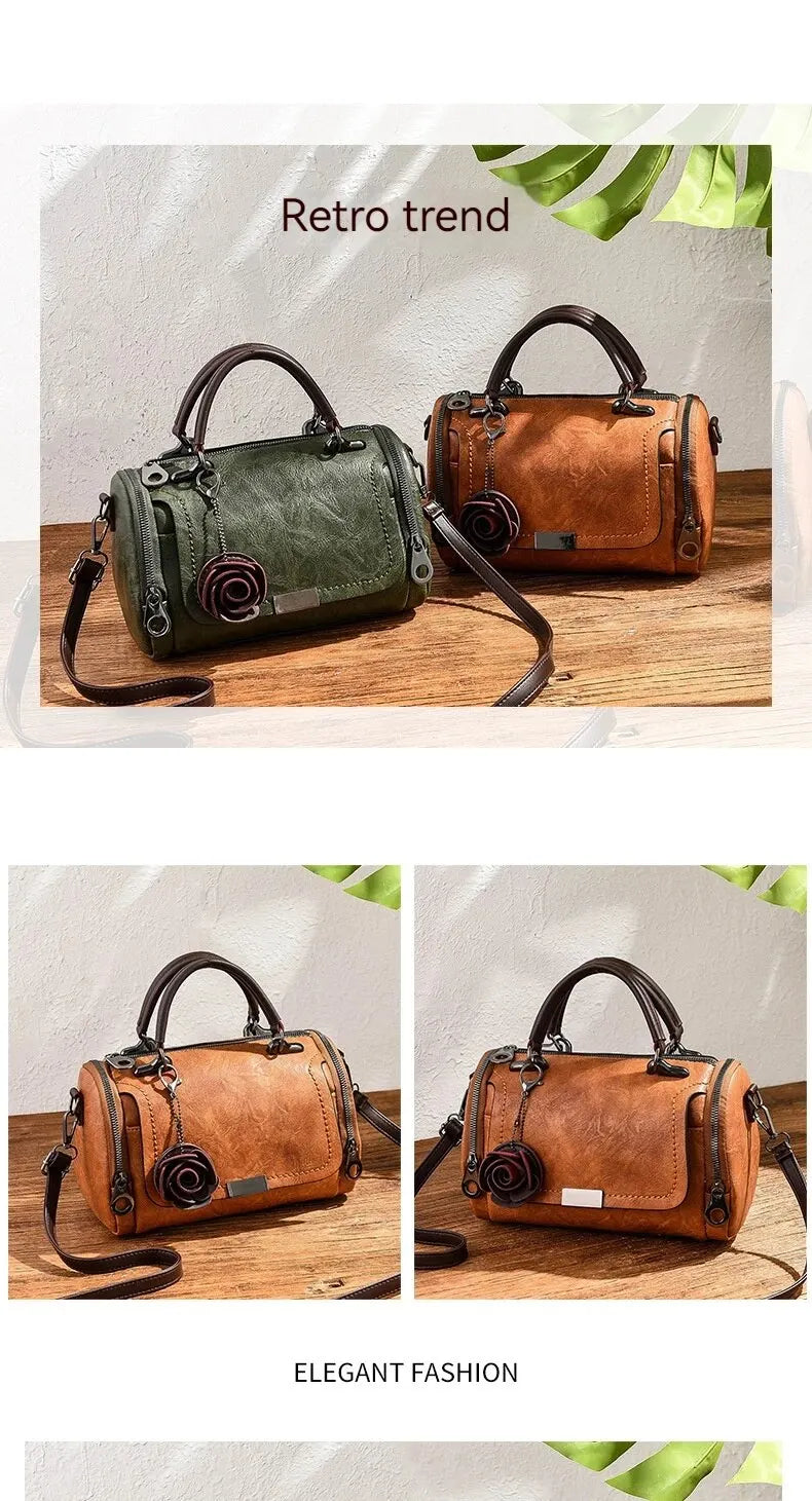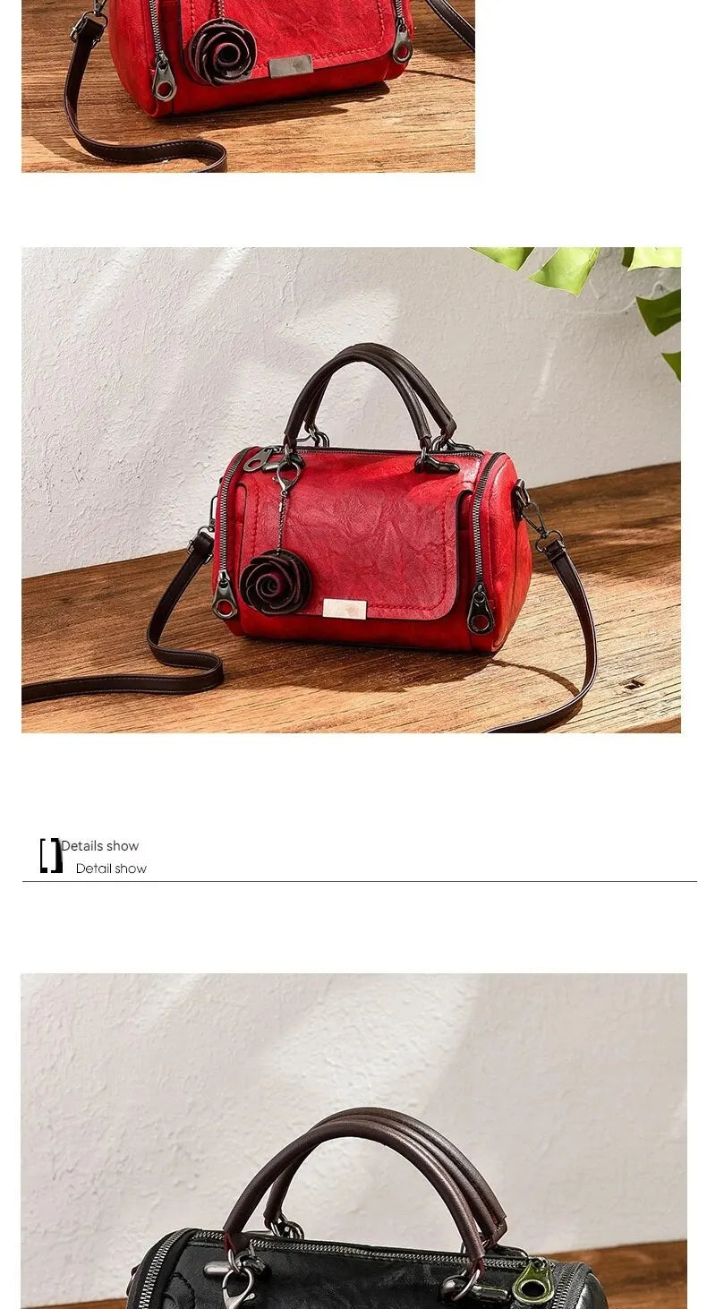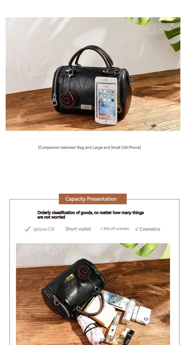 Experience the charm of vintage floral style with this delightful barrel bag. Featuring a delicate rose accent and versatile design, this bag is the perfect blend of elegance and practicality. Carry your essentials in timeless style and let your personality bloom.