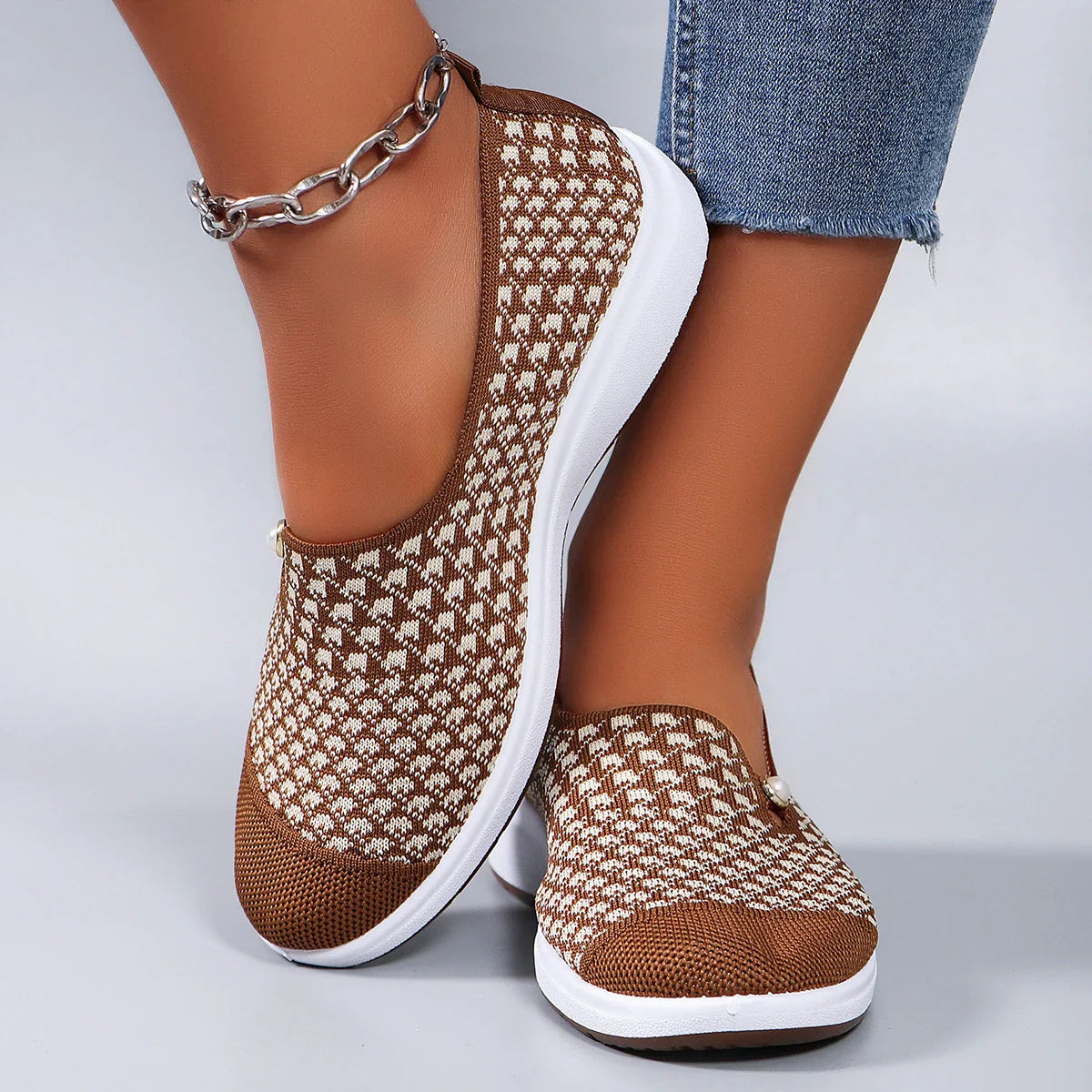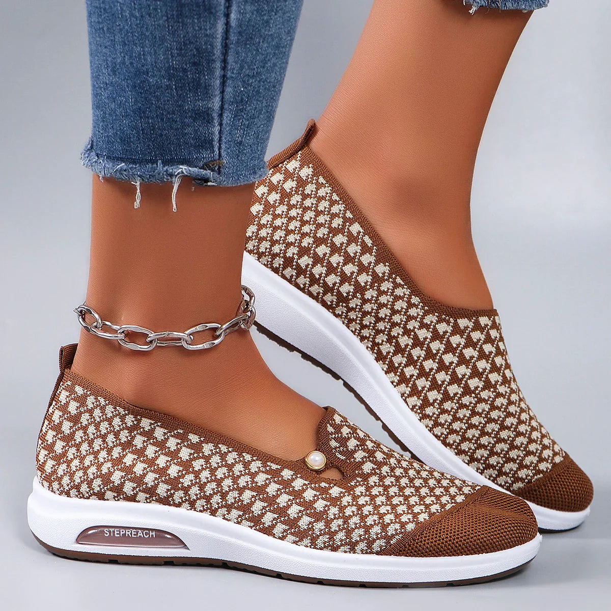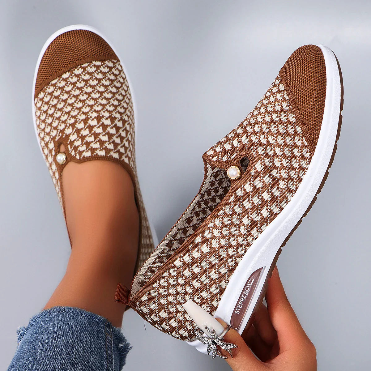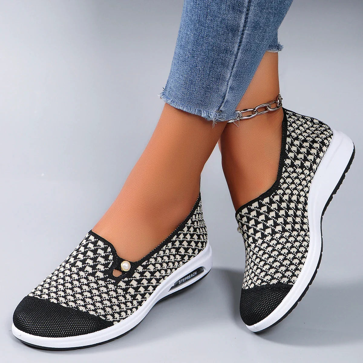 Who said comfort can’t be cute? The Everyday Glide brings effortless and breathable comfort with a stretchy knit-style upper, and a cute pearl accent. These are the shoes you reach for everyday!